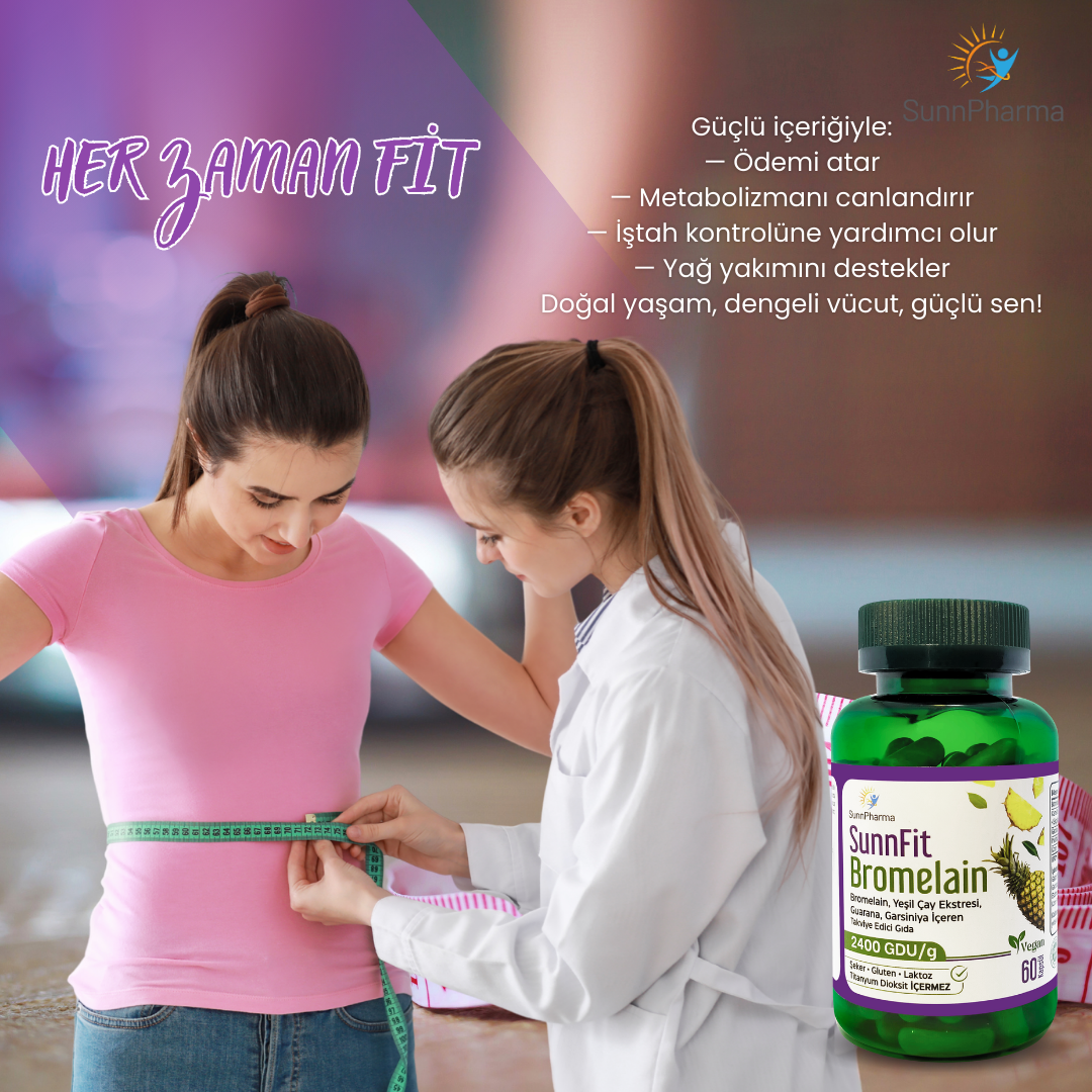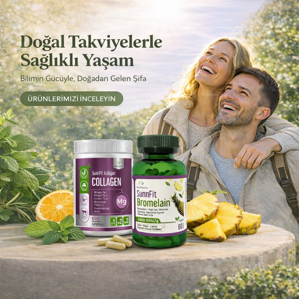 unnfit Bromelain, ananas bitkisinin sap, meyve ve kabuk kısmından elde edilen doğal bir enzim olan bromelain içeren bir takviye edici gıdadır. Bromelain, özellikle proteolitik özellikleri sayesinde proteinlerin parçalanmasına yardımcı olan bir enzim olarak bilinmektedir. Ananas; Güney Amerika ve Güneydoğu Asya başta olmak üzere tropikal bölgelerde yetişen değerli bir meyvedir. Bu meyvenin özellikle sap ve kabuk kısımları, bromelain enzimi açısından zengin bir içeriğe sahiptir. Sunnfit Bromelain, bromelainin doğal yapısından faydalanmak isteyenler için özenle geliştirilmiş bir takviye edici gıda olup, günlük beslenme rutinine destek sağlamayı amaçlar. Kaliteli içeriği ve güvenilir formülasyonu ile kullanıcıların ihtiyaçlarına pratik bir çözüm sunar.